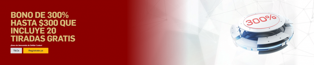 Bono de 300% hasta por US$300. Icluye 35 tiradas gratis |